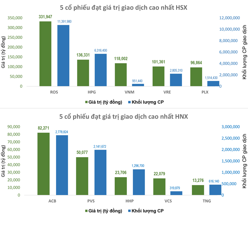 Giá trị giao dịch khớp lệnh hôm nay cũng tăng cao nhất trong 3 phiên, đạt trên 3.000 tỷ đồng. Những mã blue-chips tăng giá tốt có thanh khoản cao là VNM, VRE, PLX, MWG, VJC, ACB...